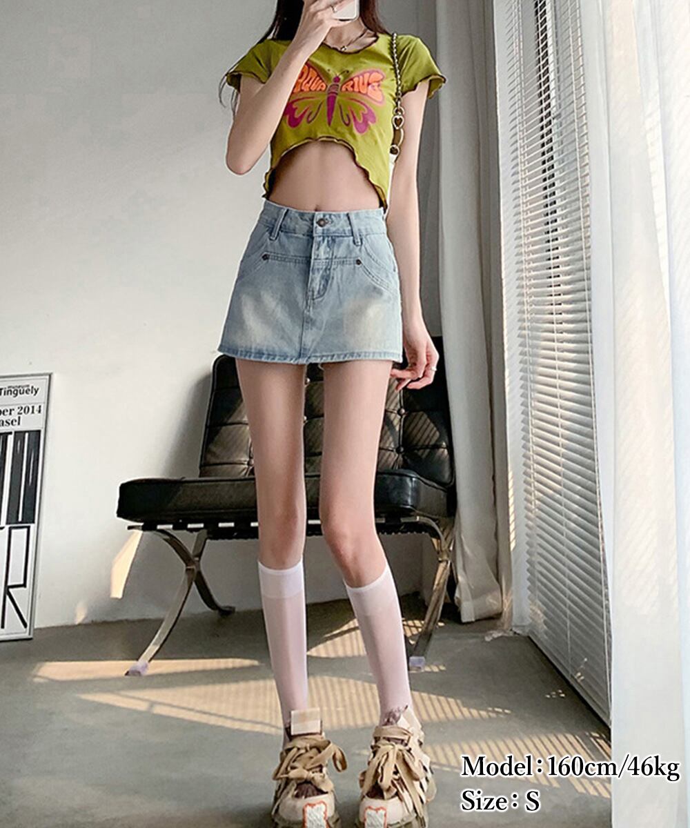 ミニスカートのデザインですが、後ろから見るとショートパンツのデニムスカパンです。