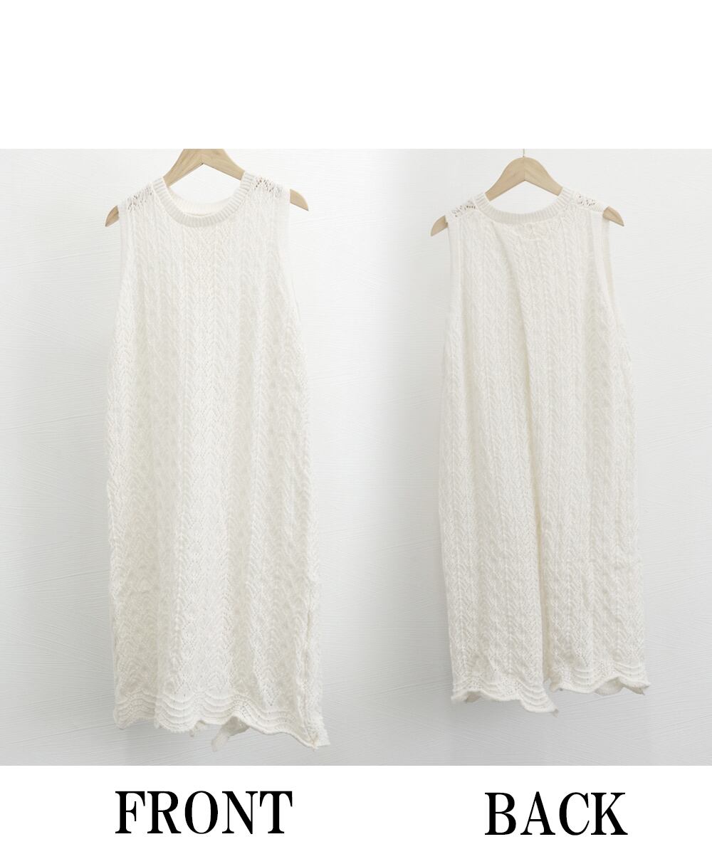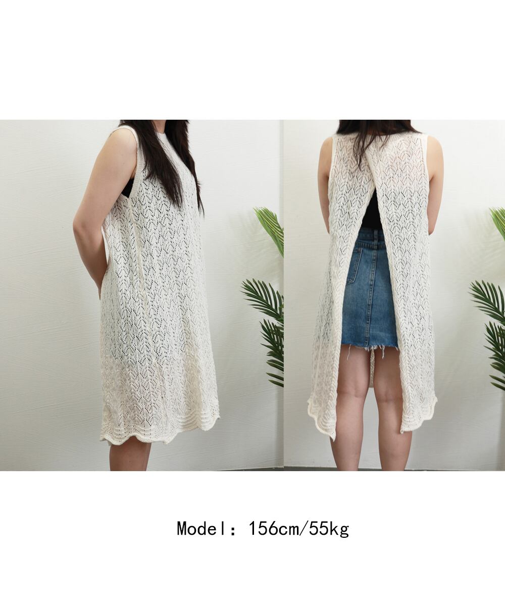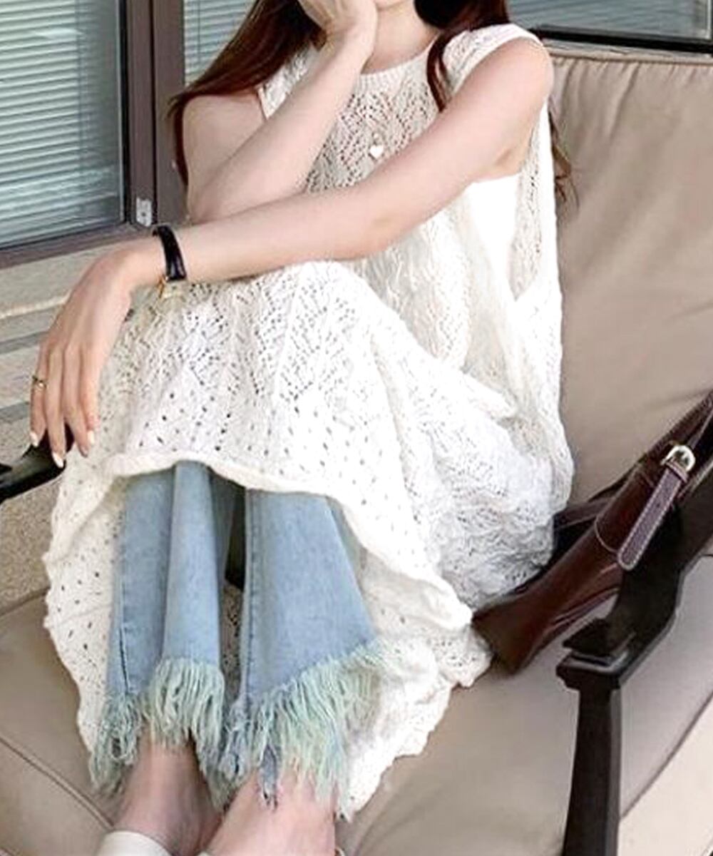 ざっくりとした透かし編みで、ヘルシーな肌見せが出来るロング丈ニットトップス