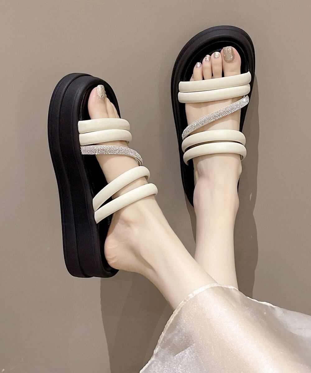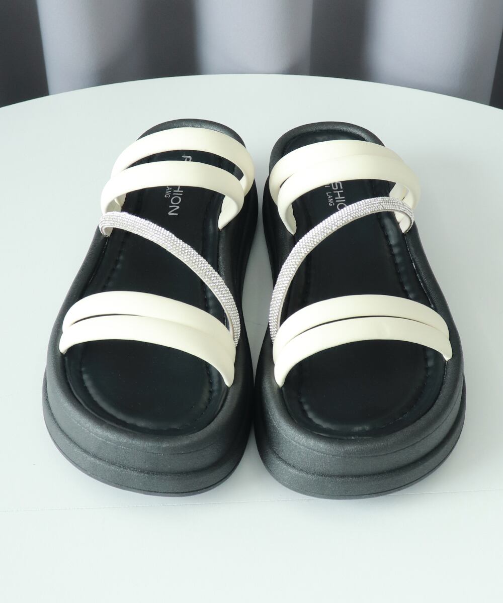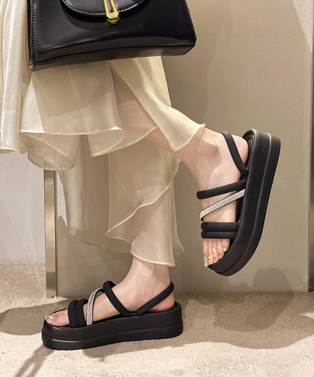 歩くたびキラキラ光る!豪華ラインストーン付きで多重ストラップデザインが特徴的なサンダルの登場。