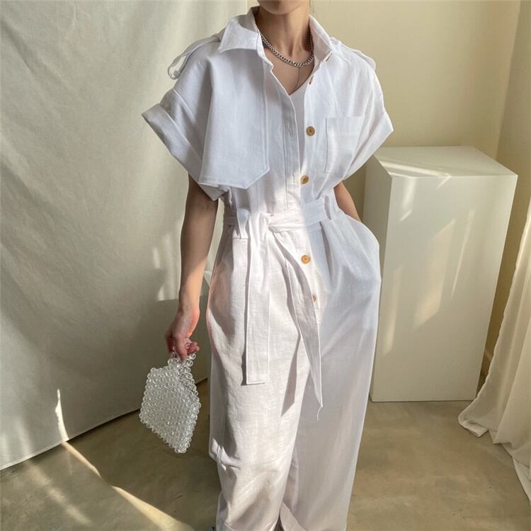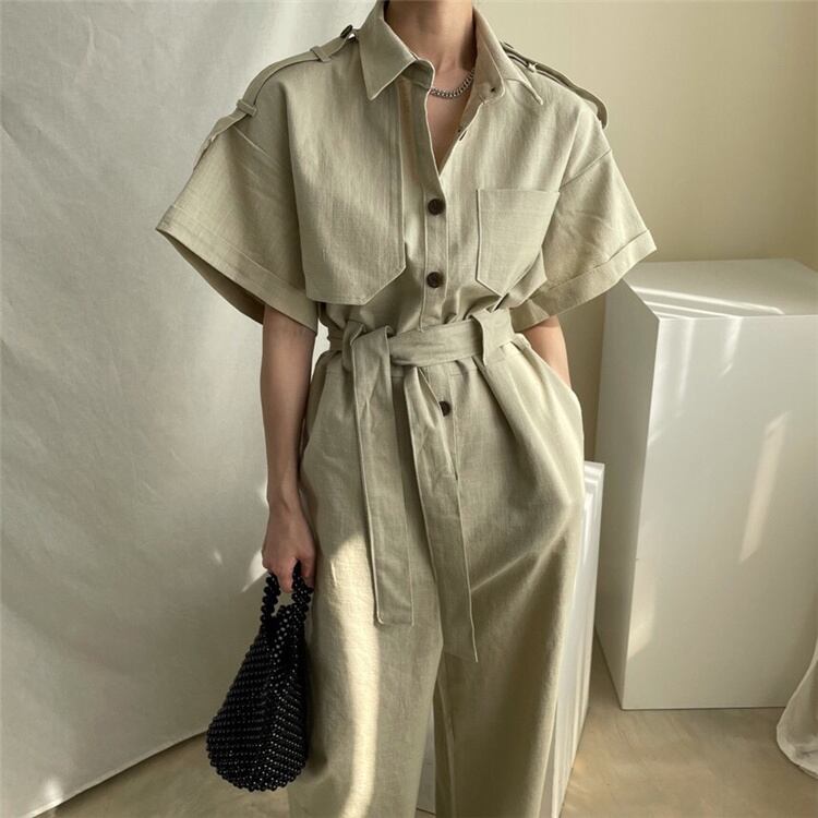 高品質生地を贅沢に使用したイレギュラーオールインワン。ゆったりとしたデザインに、ウエストを括る半袖単体ボタンスタイルが特徴です。通勤に最適な一枚で、忙しい朝でもスタイリッシュに決められます。どんなシーンでも活躍する万能アイテムです。贅沢な素材感と絶妙なデザインで、あなたの魅力を引き立てます。まるでランウェイから抜け出したようなスタイリングで、周りの視線を独り占め。この魅惑的な一枚で、自信を持って輝いてください。