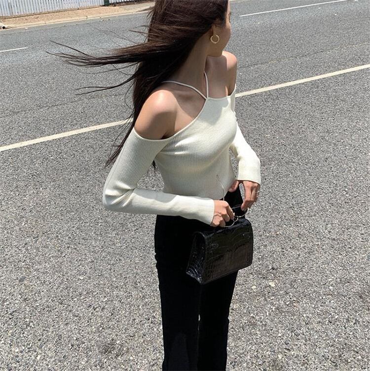 ショルダーストラップが細く、ショート丈のニットトップス。フェミニンな印象を演出します。柔らかいニット素材で、着心地も抜群です。ぜひ、お気に入りのボトムスと合わせて、お洒落を楽しんでください。