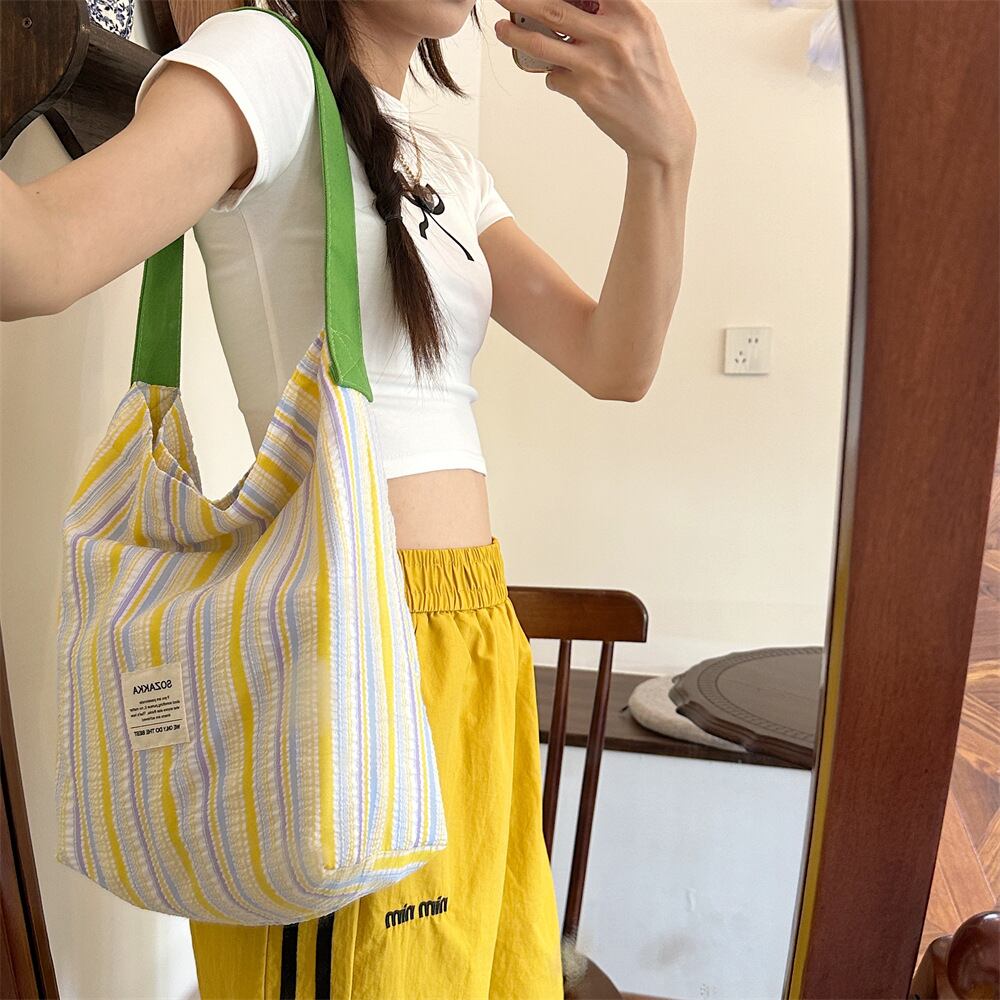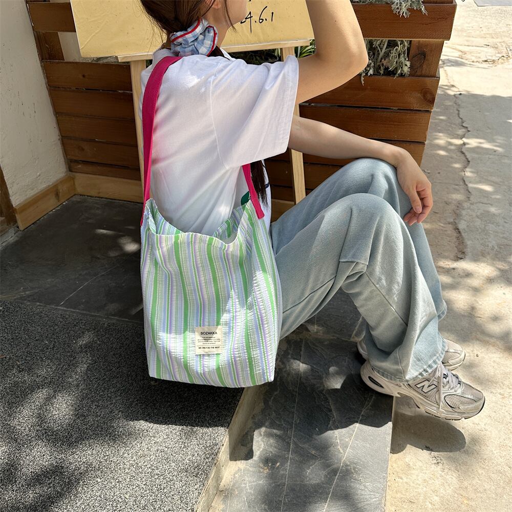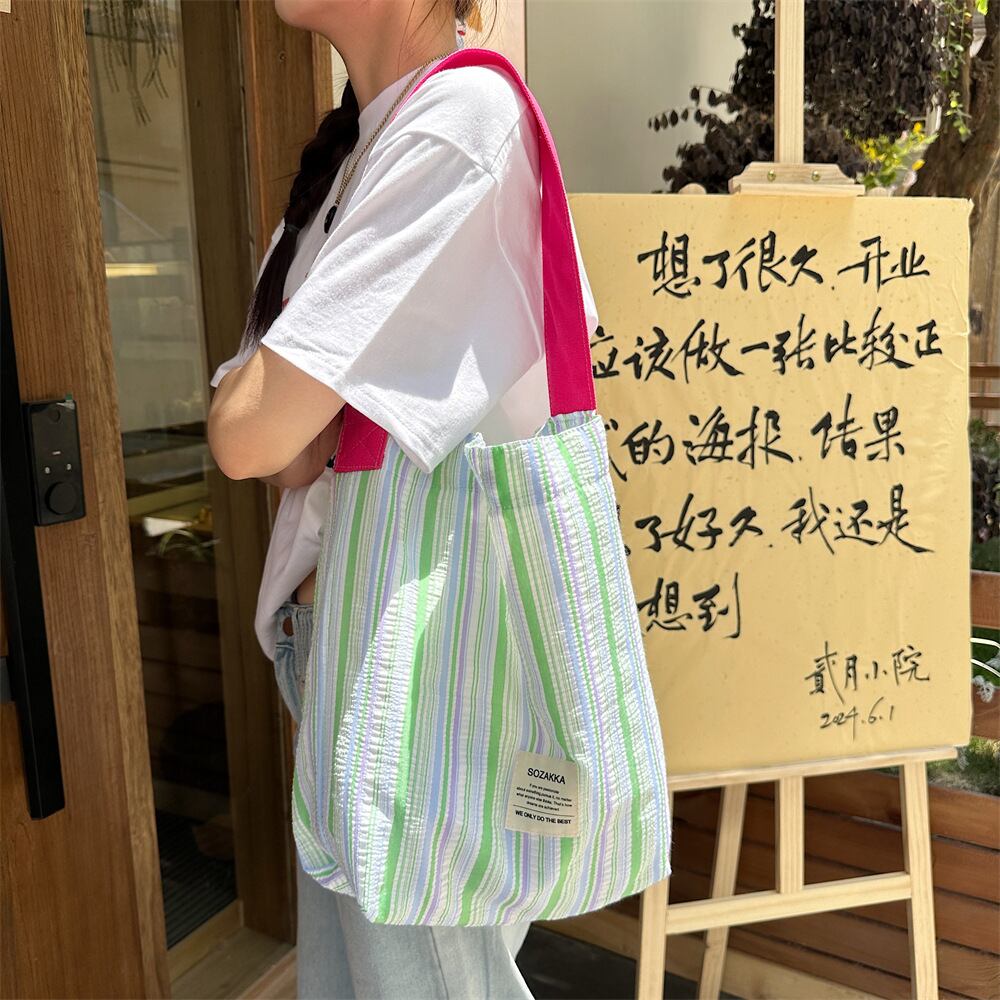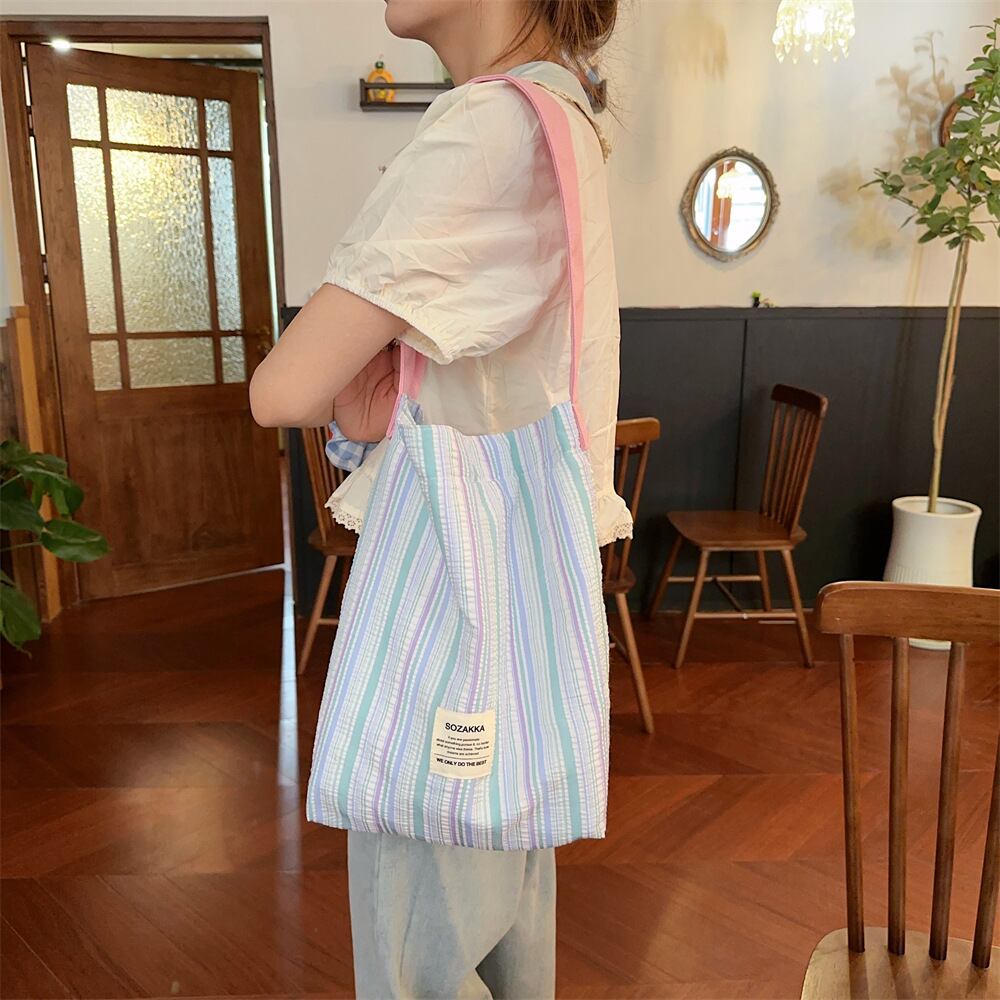 【2024新作】ショルダーバッグ トートバッグは、肩掛けストライプボーダーがおしゃれなアイテムです。帆布キャンバス素材を使用しており、丈夫でありながらもスタイリッシュなデザインが魅力。毎日の通勤やお出かけにぴったりのバッグです。