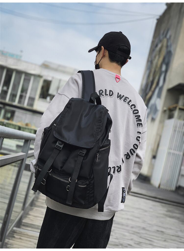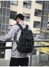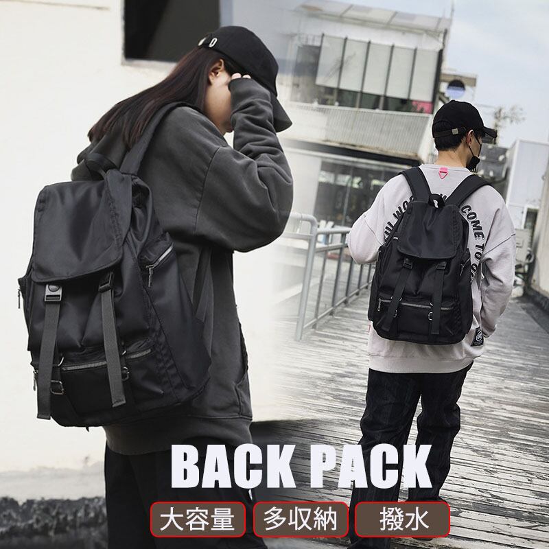 カジュアルなデザインで大容量のリュックサック!男女問わず使えるユニセックスアイテム。撥水仕様の黒ブラックがすっきりとした印象を与え、旅行や通勤通学に最適な使い勝手の良さを兼ね備えています。