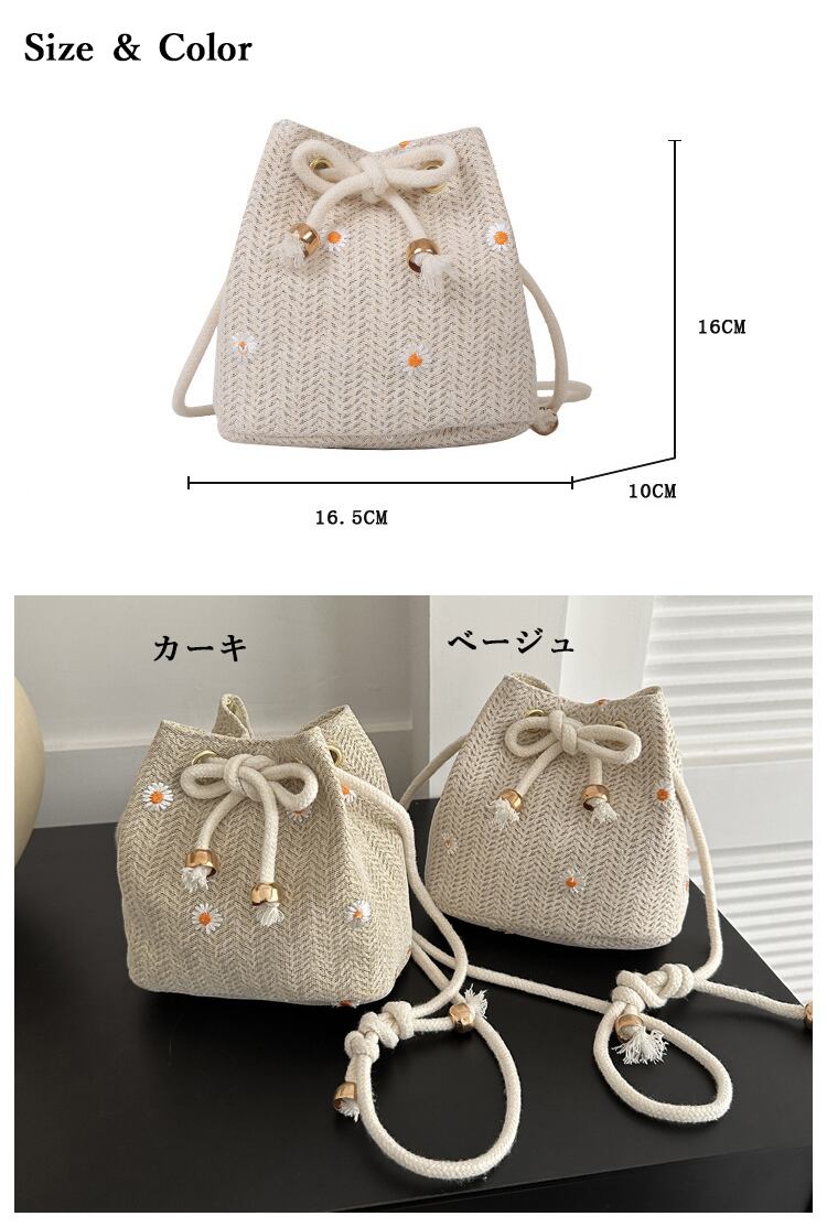 【新作】レディース カゴミニショルダーバッグは、麦わら素材で編まれたエコフレンドリーな逸品です。可愛らしいレース花柄刺繍が施され、夏のコーディネートに華やかさをプラスしてくれます。ポイントとなるのは、巾着ペーパーバッグのデザイン。使い勝手も抜群で、小物や日用品をすっきりと収納することができます。カゴバッグとショルダーバッグの2way仕様で、様々なスタイルに合わせることができます。