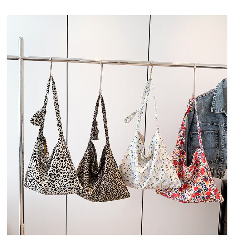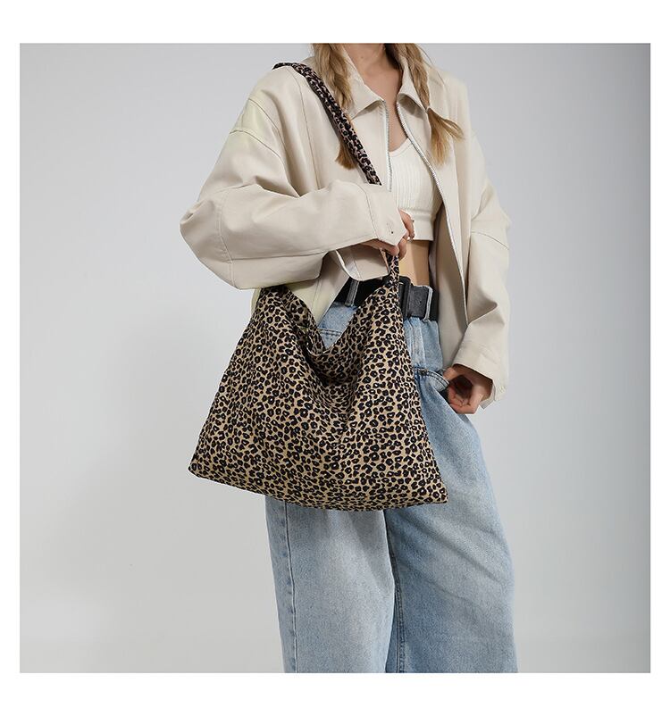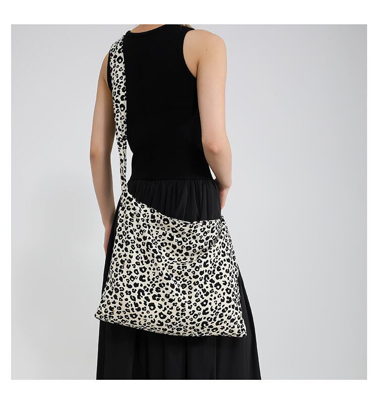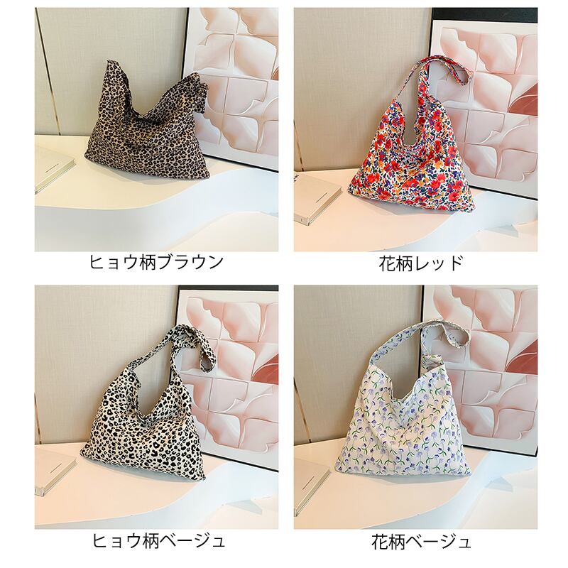 <日常使いにおすすめのレディースショルダーバッグ。2024年の新作は、軽量で丈夫な帆布キャンバス素材を使用。ヒョウ柄と花柄の組み合わせがおしゃれで目を引きます。広めのサイズと多数の収納ポケットで荷物もスッキリ整理できます。>